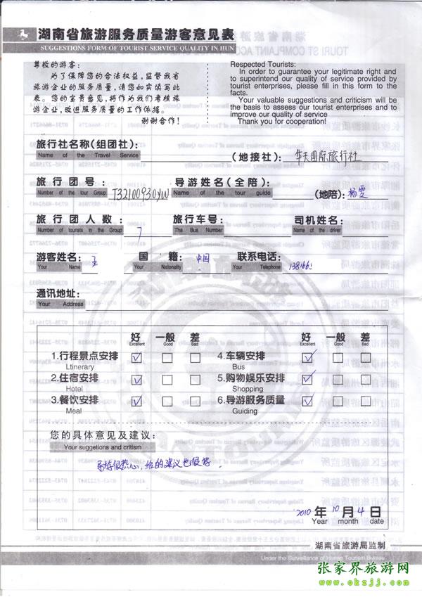2010年9月30日團 評價導游楊雯 很熱心